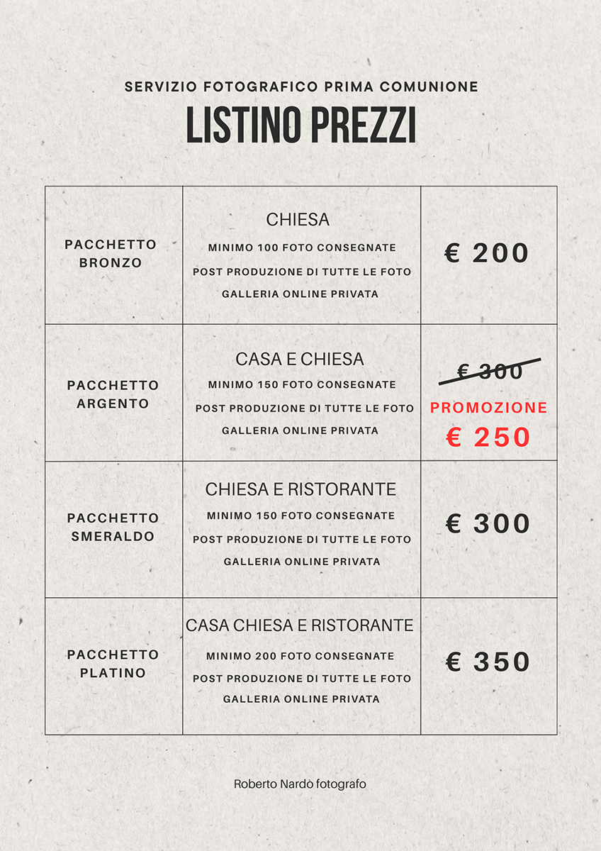 PREZZI FOTOGRAFO PRIMA COMUNIONE